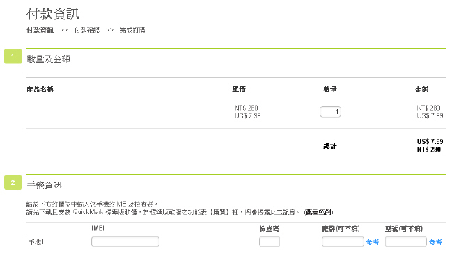 填寫資料過程中會需要從您已經安裝好的 QuickMark 查詢與輸入資訊。